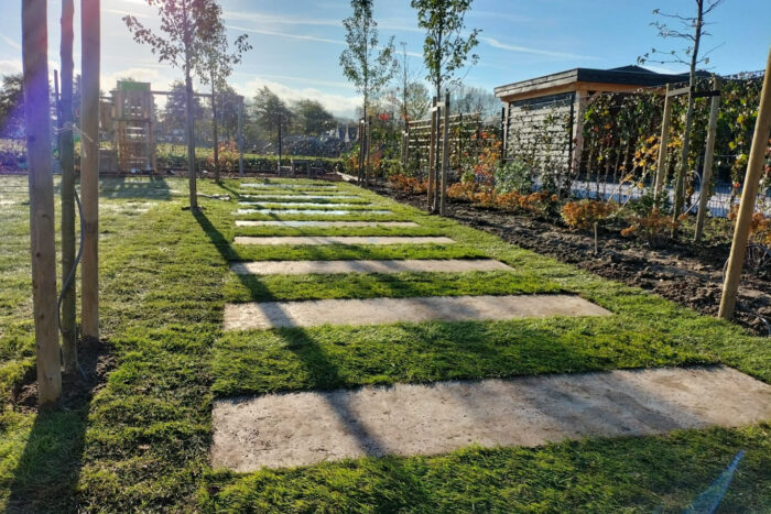 Marc legt de voordelen van gazonaanleg in het najaar uit. ‘In het najaar, uitgezonderd periodes met vrieskou, slaan graszoden béter aan dan in het voorjaar. Dat zit zo: graszoden komen pas na een jaar van het land. Hierdoor bevatten de zoden goede grond, waar het gras de winter probleemloos mee doorkomt. Omdat de gelegde graszoden in het najaar en in de winter in een rusttoestand verkeren, kan vrieskou geen kwaad. Zodra het voorjaar wordt zet de grasgroei in, maar ook de synergie met het lokale bodemleven. Eventuele verkleuringen trekken dan bij. Feitelijk vormt het najaar de aanlegperiode bij uitstek voor gazon.’