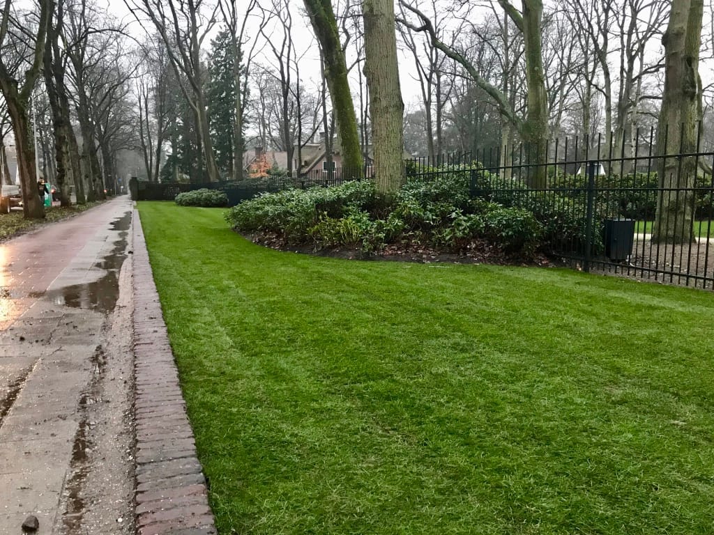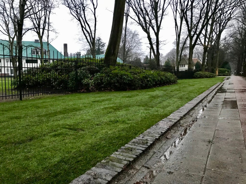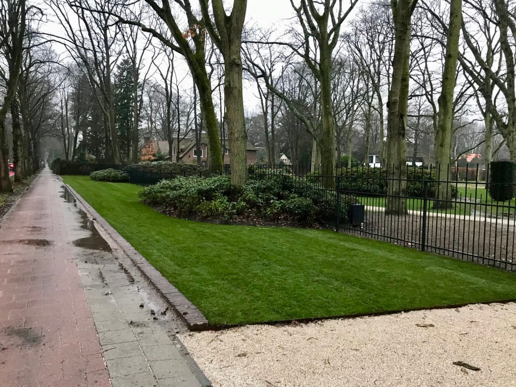Het oude gemeentehuis in Blaricum is omgebouwd naar luxe penthouses. Om het aangezicht van de locatie mooi uit te laten komen voor potentiële kopers hebben we 300 m2 graszoden aan de buitenkant van het hek geplaatst. Het aangezicht is hierdoor gelijk een heel stuk verandert.