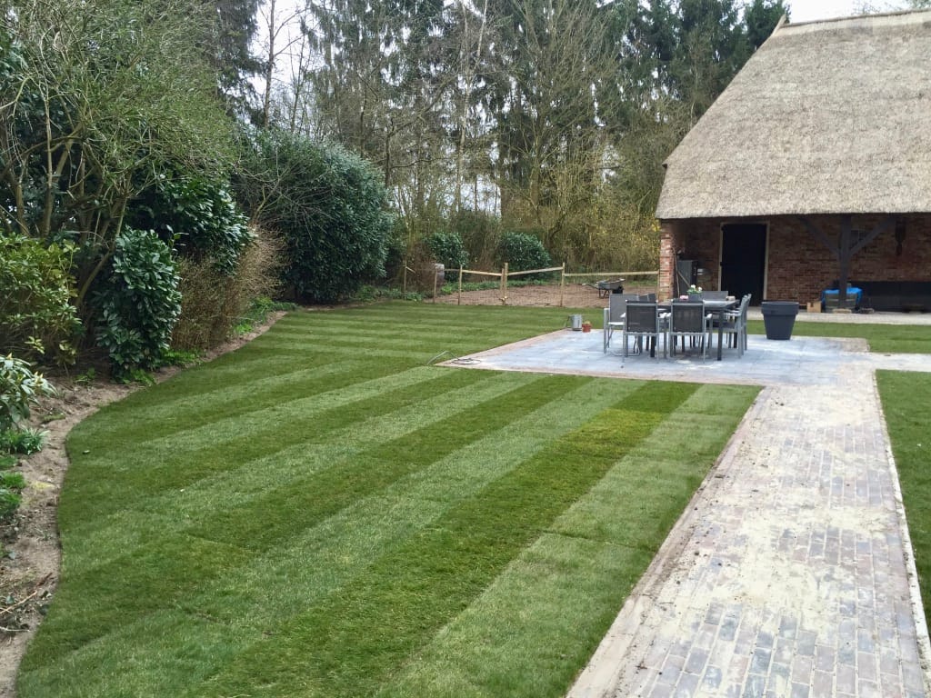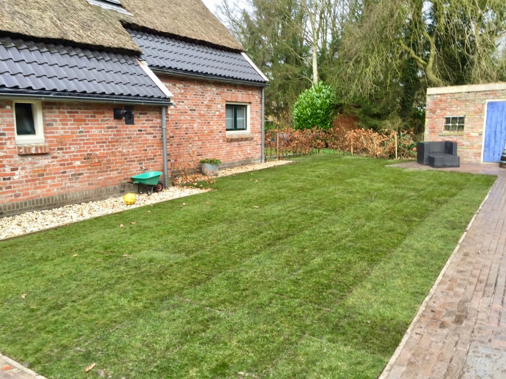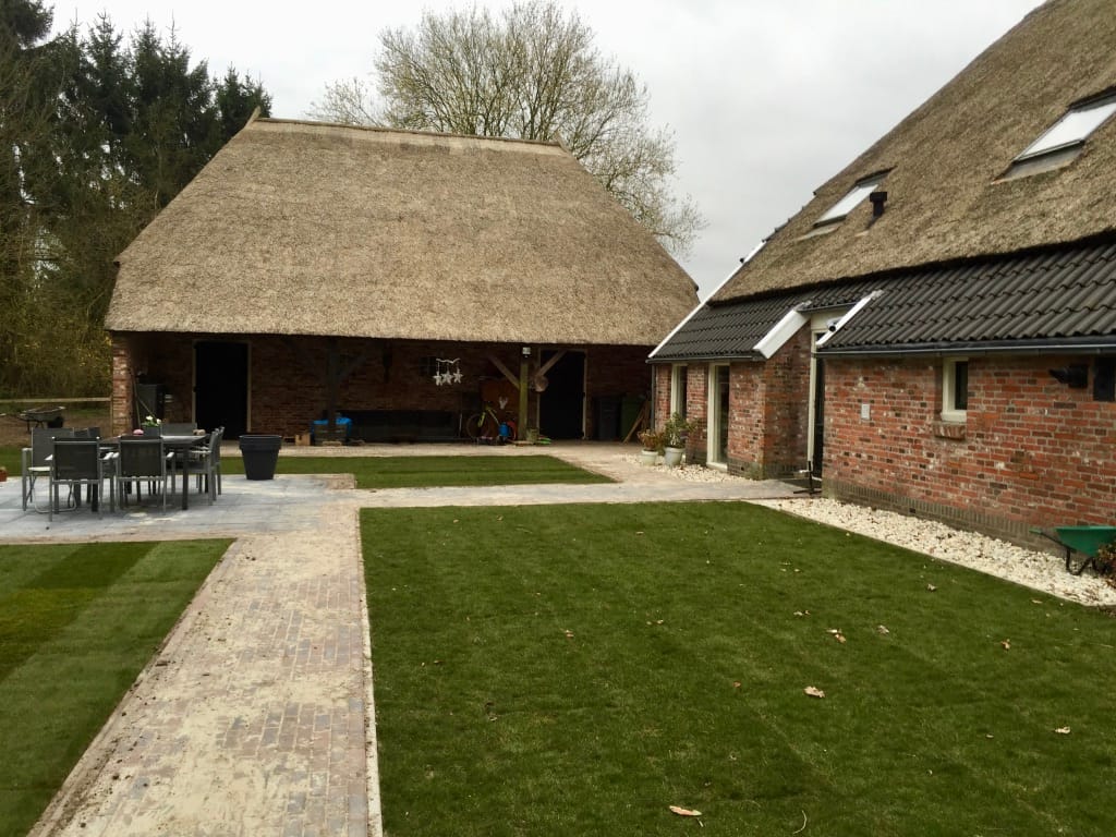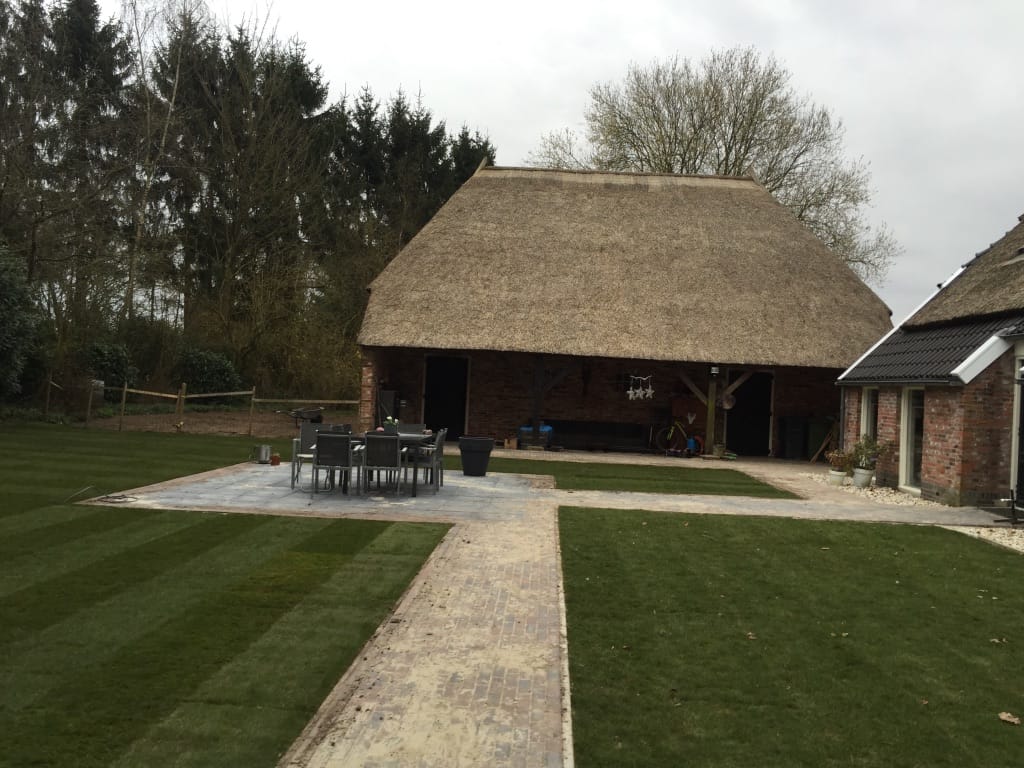 Bij een oude boerderij in Drouwen hebben we nadat nieuw straatwerk is aangelegd een strak gazon neergelegd. Helaas is niet veel later het pand afgebrand.