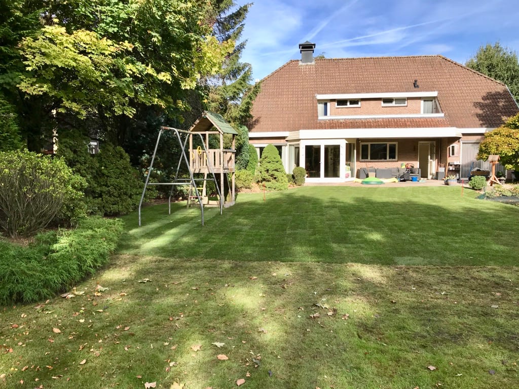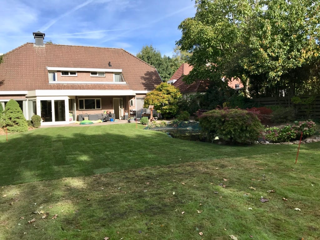 Voor een klant in Eindhoven hebben we een gedeelte van het oude gazon verwijdert en het nieuwe gras op het oude laten aansluiten. Door een rechte lijn af te steken met een schep en het verwijderde gras 2 cm te verdiepen sluit het nieuwe gras op dezelfde hoogte aan als het nieuwe gras. De graszoden kunnen bij groeizaam weer binnen twee weken intensief betreden worden.