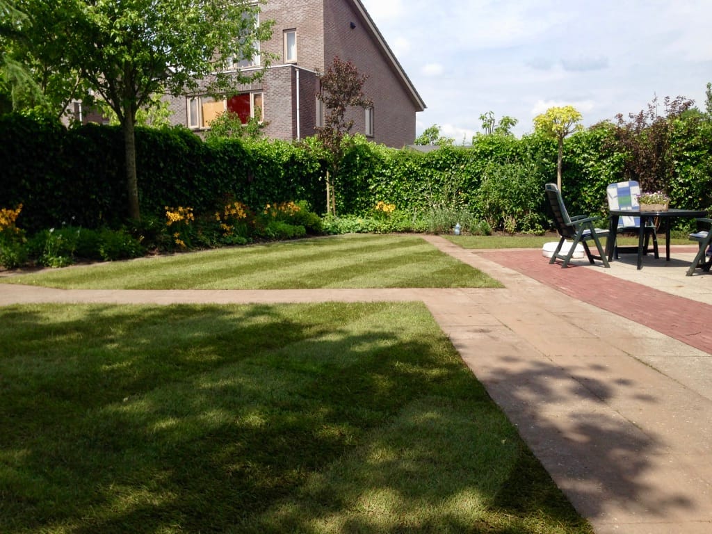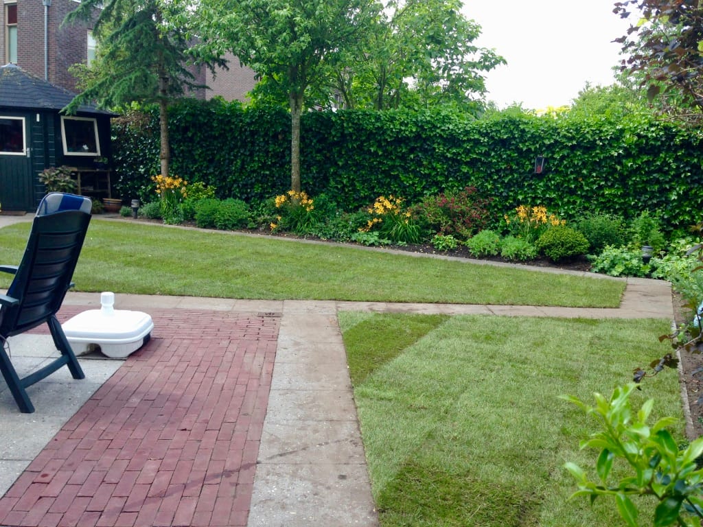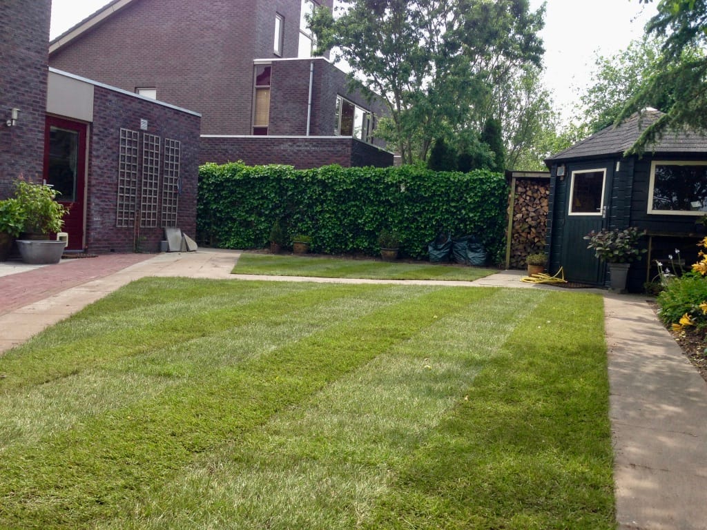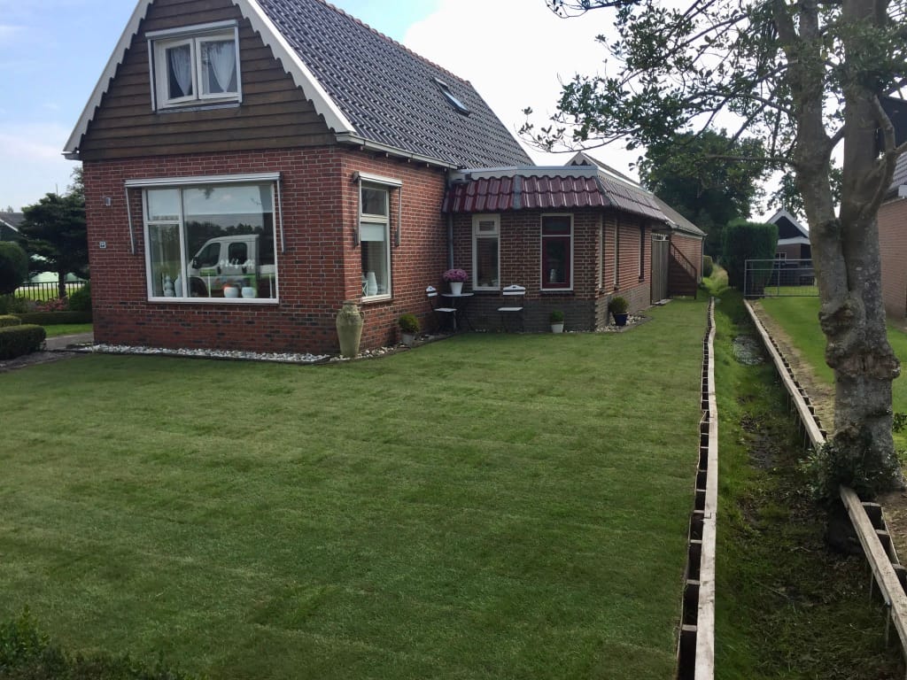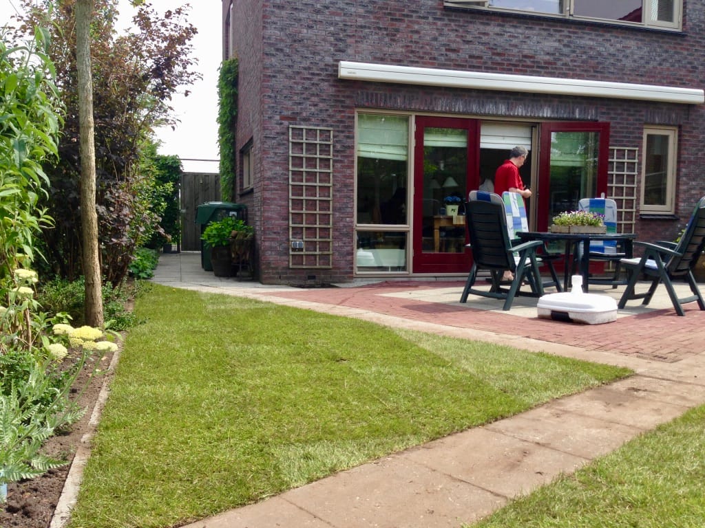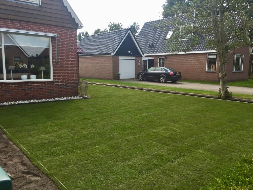 Rondom een woning in Gorredijk hebben we 105 m2 graszoden gelegd. Wanneer de graszoden zijn gelegd lijkt de tuin een stuk ruimtelijker en schatten veel mensen het ook groter in. Om de hoeveelheid graszoden te bepalen die nodig zijn is ons advies om een meetlint te gebruiken en niet de lengtes uit te passen.