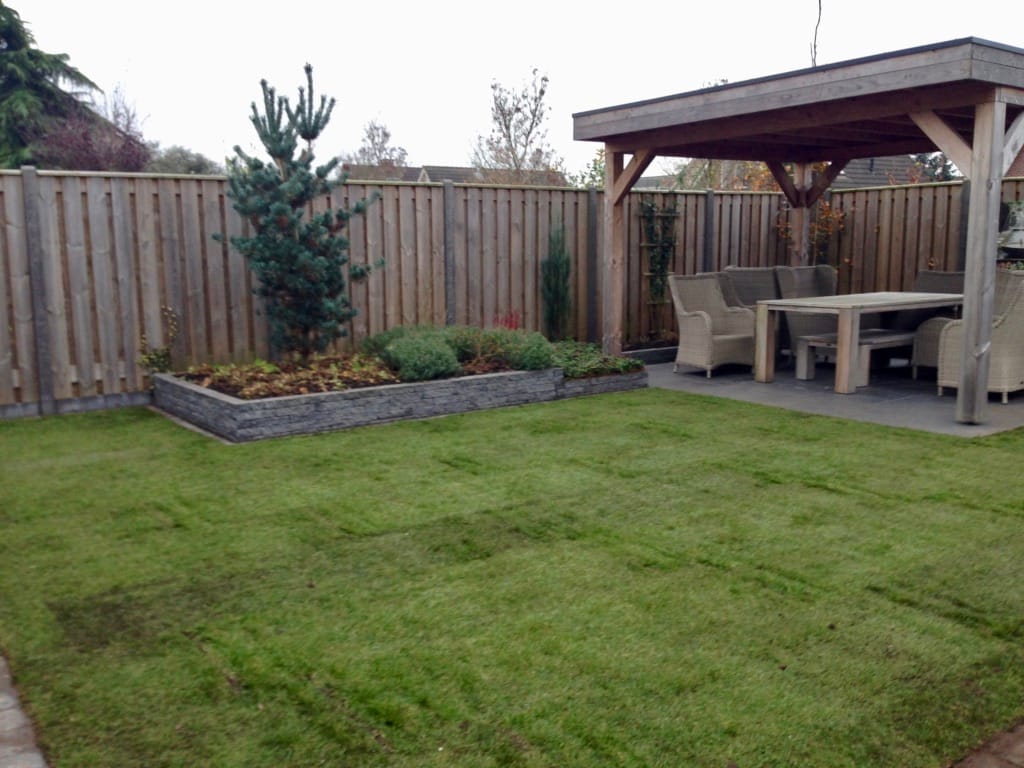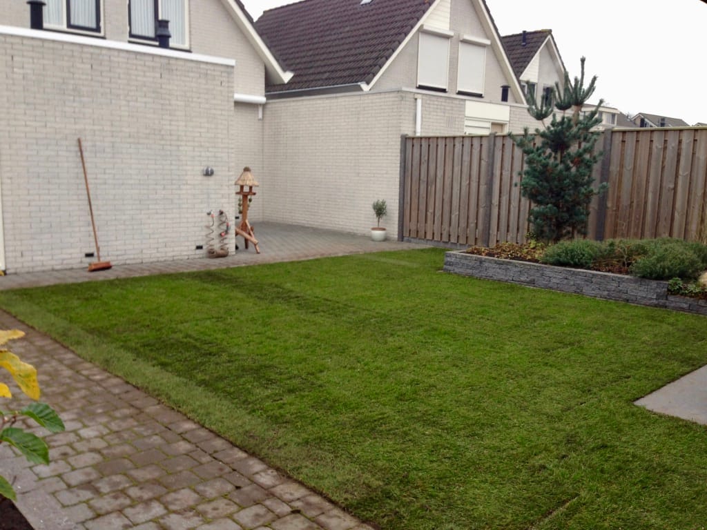 We komen vaak een nieuw gazon aanleggen wanneer de tuin is vernieuwd. De trend van de laatste jaren is dat veel mensen een overkapping of veranda hebben geplaatst. Na de zware bouwwerkzaamheden neemt de straatmaker de straat vaak voor zijn rekening en mogen wij het slot stukje van de tuin netjes maken en de graszoden komen aanleggen. Zo ook hier in Hulsen.