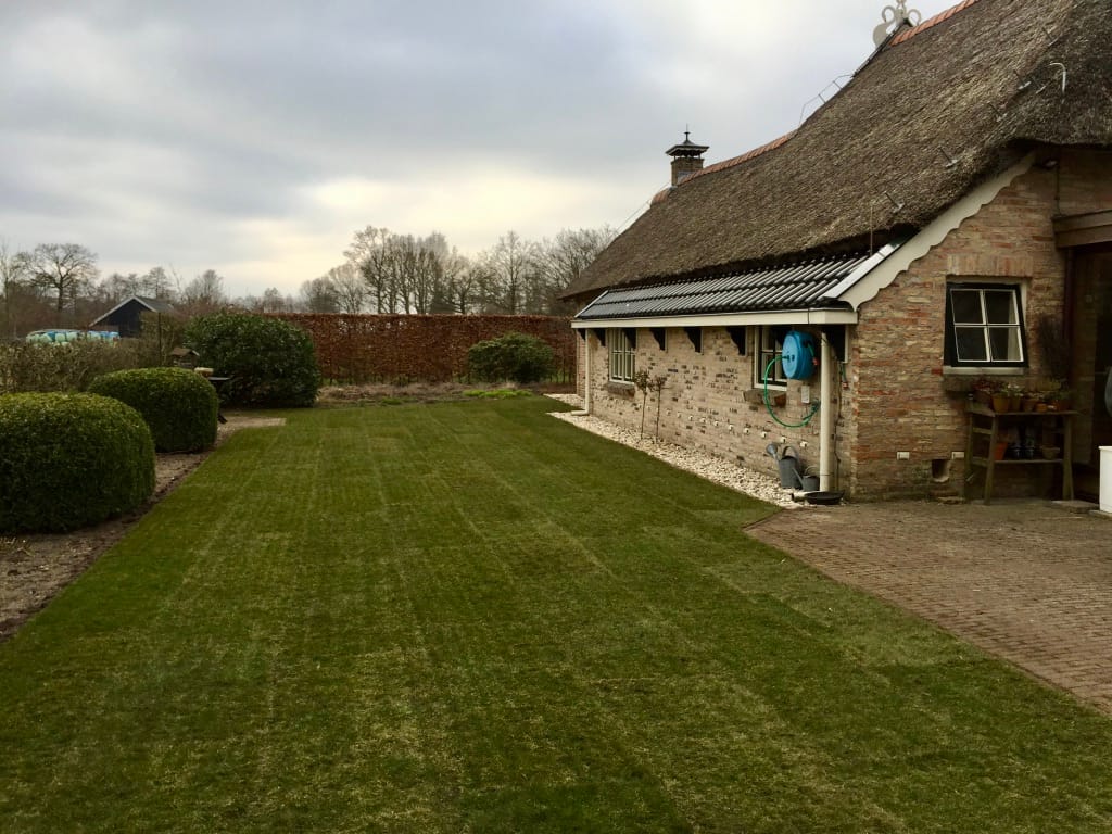In het vroege voorjaar, eigenlijk nog winter, hebben we het gazon vervangen in Kootstertille. De klant had veel last van mollen in de tuin en wilde zijn nieuwe gazon wel mooi houden. Er is voor gekozen om over de ondergrond, onder de graszoden, een mollengaas te leggen. Het mollengaas zorgt er voor dat de mollen geen molshopen meer kunnen maken en dat gangen minder impact hebben op het gras. De mollen gaan dan liever een stukje verder op zitten en zo blijft het gazon molshoop vrij.