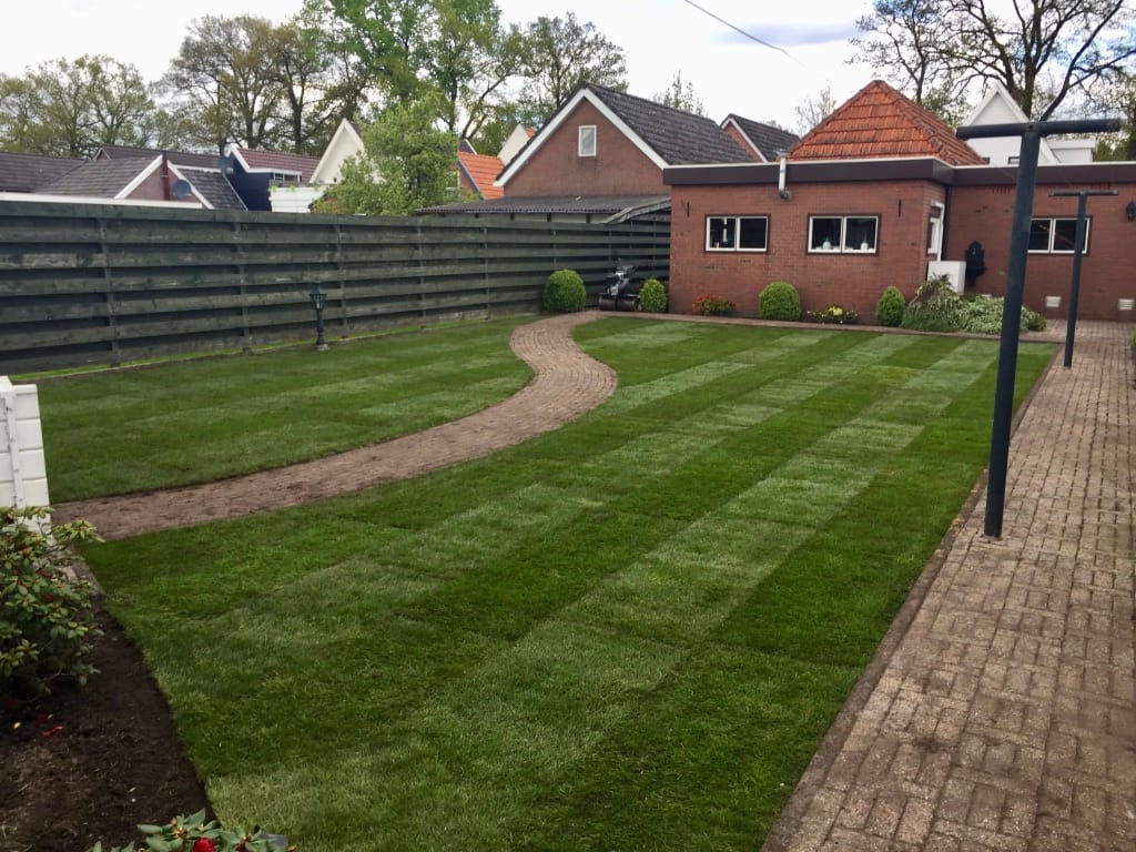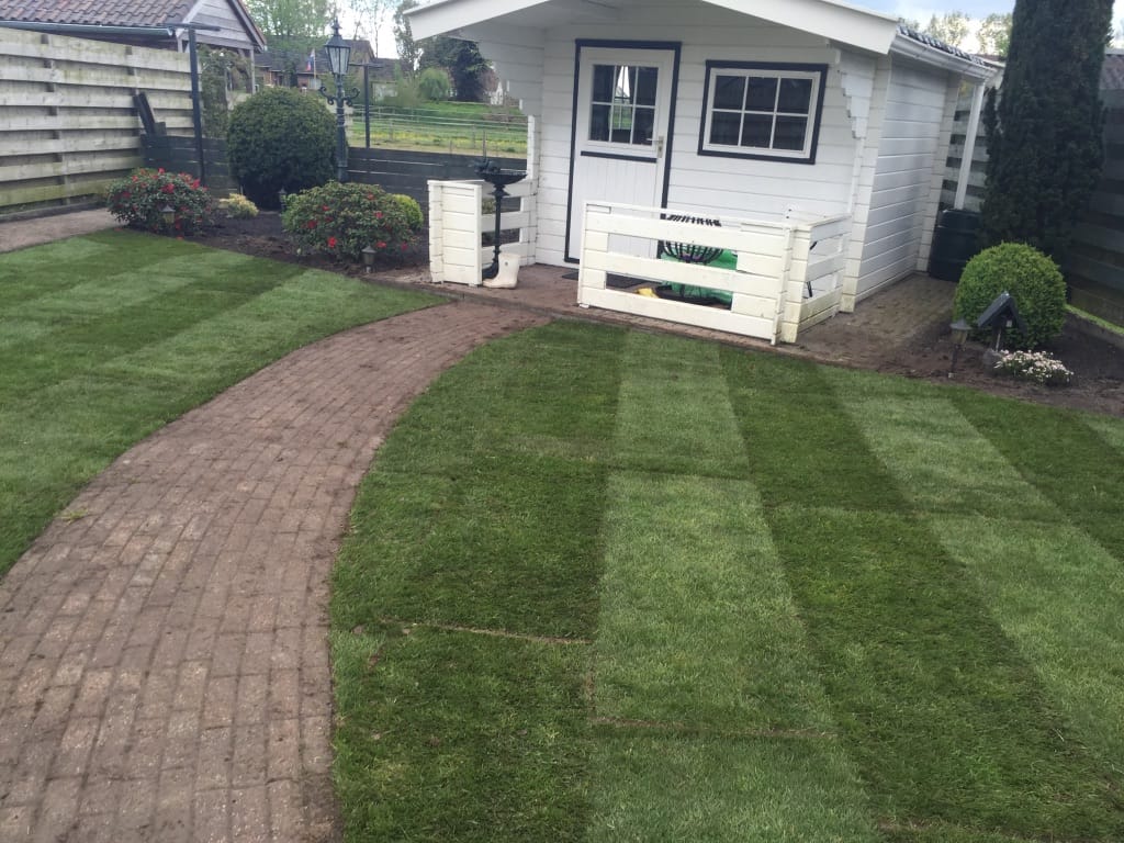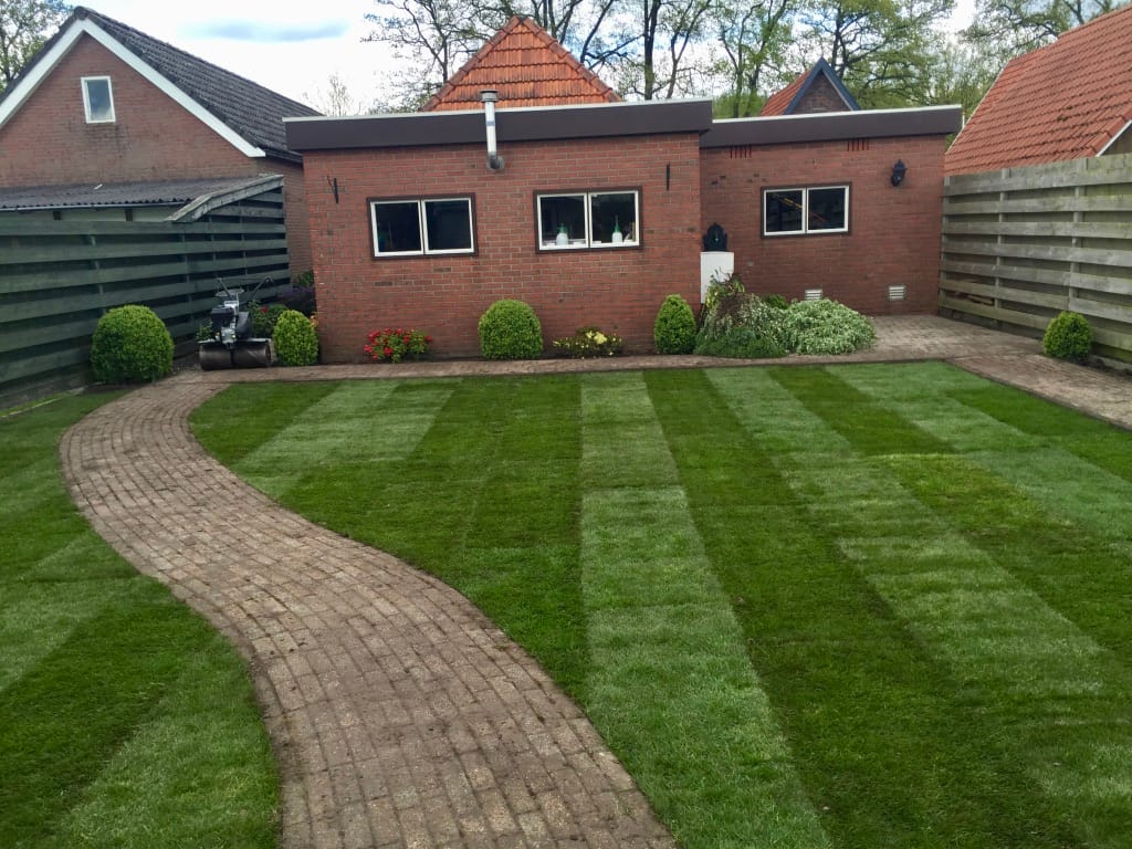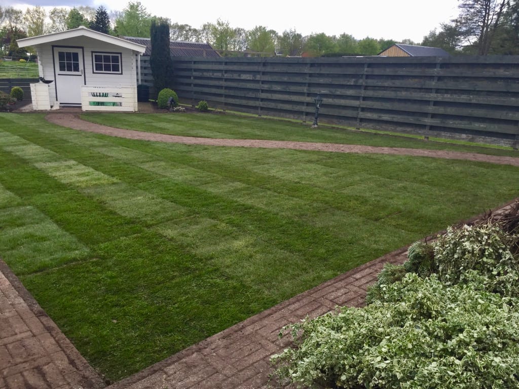 In een diepe tuin in Musselkanaal hebben we het oude gras verwijdert met een graszodensnijder. Wanneer het oude gras is los gesneden kunnen we deze eenvoudig verwijderen en afvoeren. De grond wordt nadien gefreesd en geegaliseerd zodat de nieuwe zoden gelegd kunnen worden.