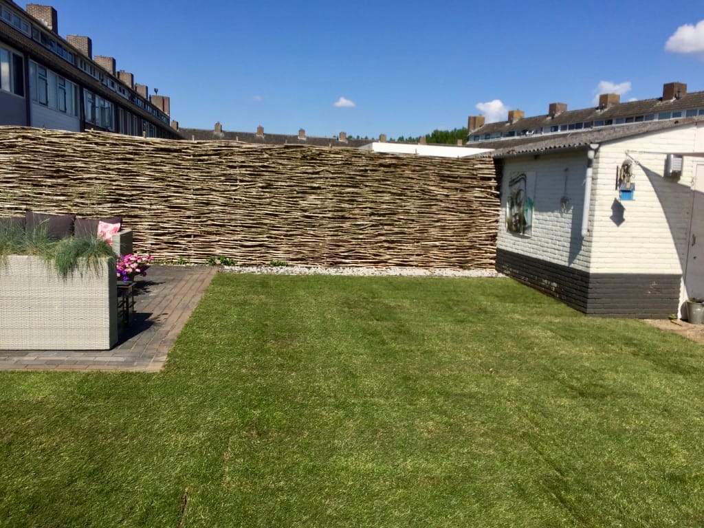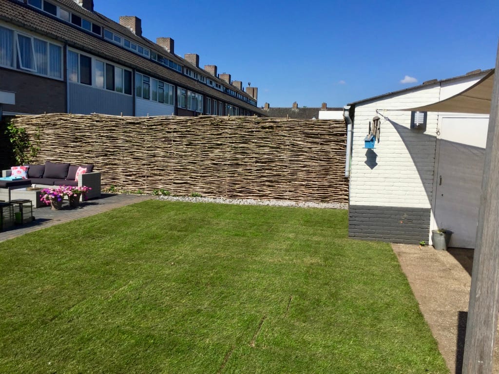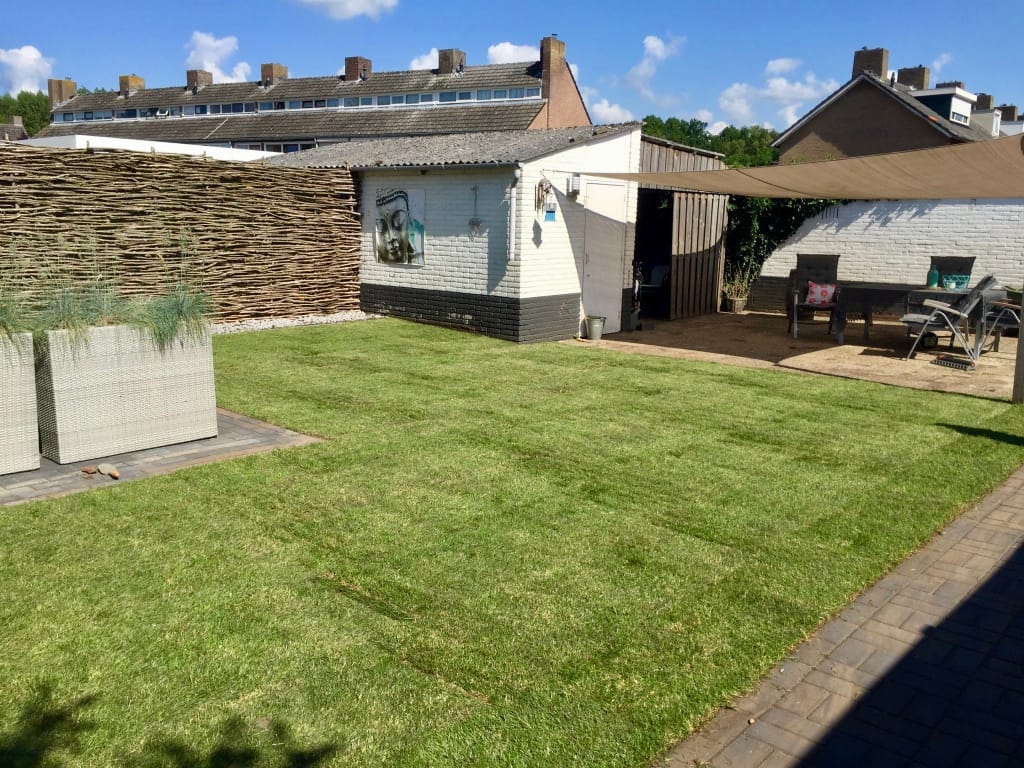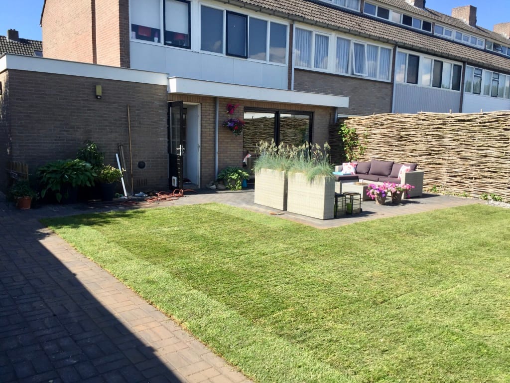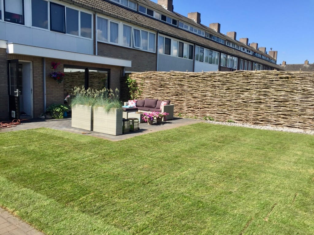 Ook in extreme warmte kunnen we vaak nog steeds graszoden leggen. Tijdens de aanleg van dit gazon in Almelo was het zeer warm. Bij hoge temperaturen kunnen we nog steeds graszoden aanleggen alleen zijn er wel speciale spelregels.