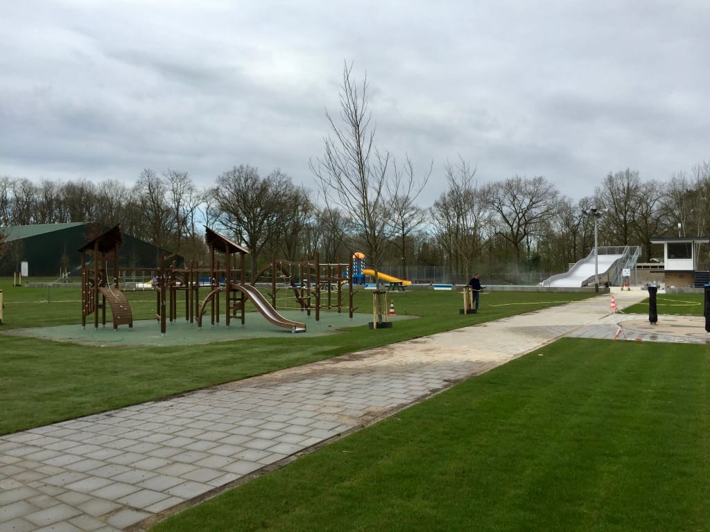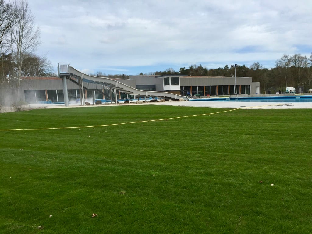 Het open lucht zwembad in Markelo was na vele jaren aan een opknapbeurt toe. Na het renoveren van de zwembaden, straatwerk en het nieuw plaatsen van een glijbaan en speeltoestellen begon het nieuwe seizoen weer. Om op tijd klaar te zijn voor de bezoekers is gekozen om gebruik te maken van graszoden en niet om het veld in te zaaien. Met graszoden kan je binnen twee weken het veld intensief betreden.