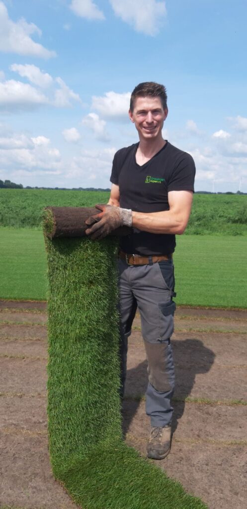 De jongeling schafte een auto aan en startte met de aanleg van gazons. Dat deed Lageman naast zijn opleiding Bouwtechnische Bedrijfskunde aan de hogeschool in Enschede. Na zijn opleiding was Lageman een poosje werkvoorbereider bij een aannemer, maar zijn ondernemersbloed kolkte. In 2012 ging hij voltijd verder met gazons aanleggen, inmiddels onder de bedrijfsnaam Graszodenkopen.be. ‘Na aanleg en vervanging breidde het bedrijf uit met leveren. Al snel volgde een website en moest het bedrijf professionaliseren. Ik was zes dagen in de week weg en vanaf half vijf ’s morgens op pad, vaak voor klussen in het westen of midden van het land. ’s Avonds deed ik de administratie. Inmiddels zijn er twee medewerkers in vaste dienst gekomen, op kantoor. Lagemans compagnon Robbert Krol, die van oorsprong akkerbouwer is, is verantwoordelijk voor de teelt. In totaal houden twee krachten zich fulltime bezig met de teelt en daarnaast zijn er enkele flexibele krachten. Voor de aanleg werkt het bedrijf ook met een flexibele schil.